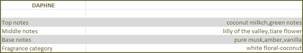The Mediterranean beauty of nymph Daphne becomes a sweet feminine fragrance with floral notes inviting the senses