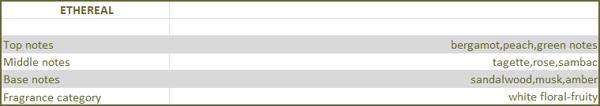 The Ethereal fragrance is a breath of light; a whisper that transports you to worlds that may never have existed.