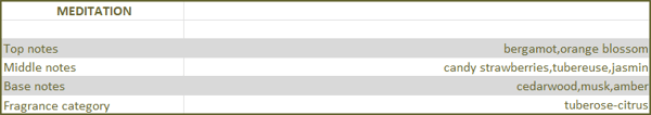 The Meditation scent becomes a guide towards self-awareness and inner peace. It promises an escape into the world of clarity